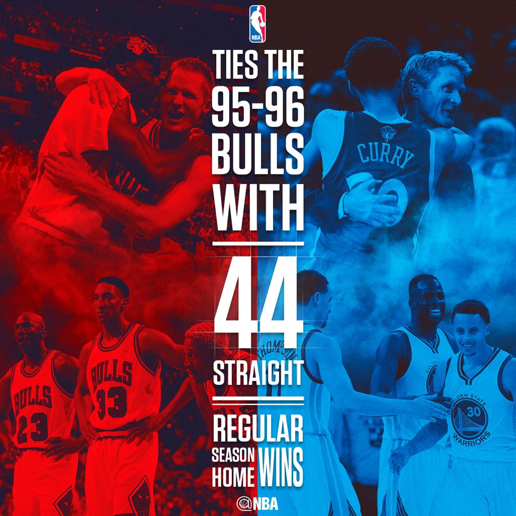 The Warriors tie the longest home regular season winning streak (overlapping seasons) at 44 wins.